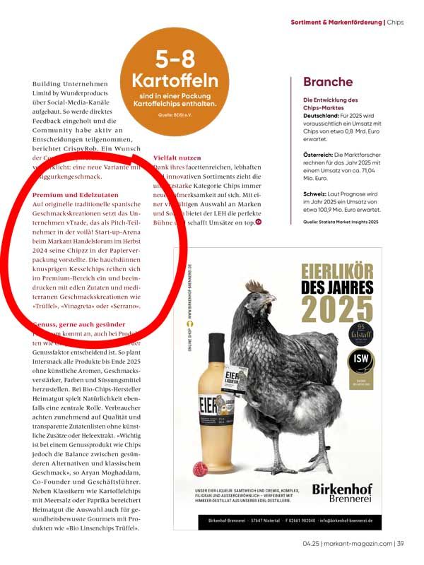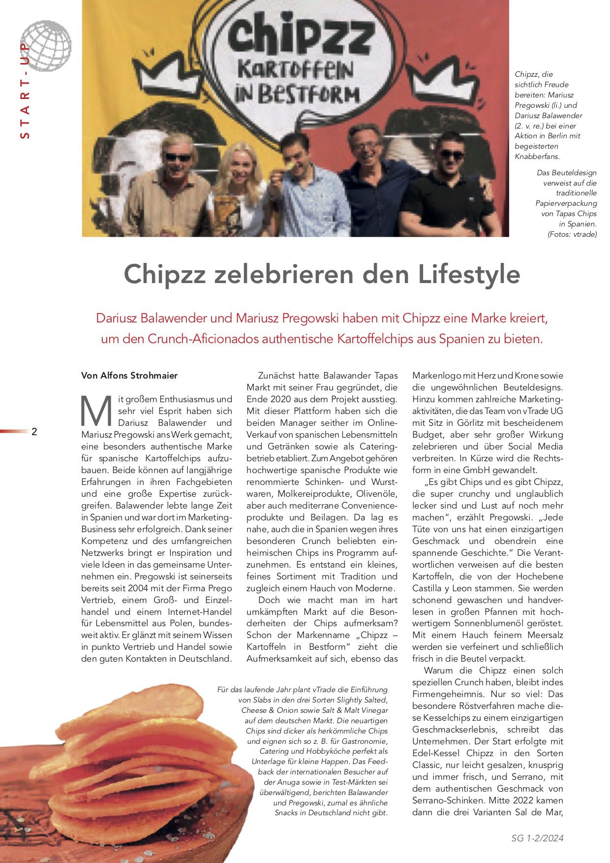 Das SG-Magazin begleitet seit mehr als 50 Jahren die Süßwarenwirtschaft in Deutschland und Europa. Ausgabe Nummer SG 1-2/2024 Artikel mit dem Titel : „Chipzz zelebrieren den Lifestyle” Redakteur Alfons Strohmaier